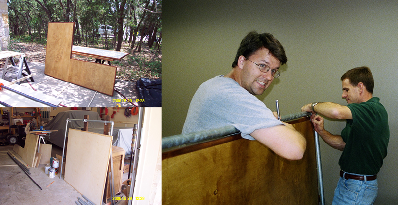 In 2008, Cleary Zimmermann, with 6 full-time employees, moved into what is now an easily recognized part of our brand, our San Antonio office. Located in Southtown in an old, 100-year-old tractor warehouse, Danny and Wade took a gamble when looking for a new space. The realtor, worried they would not like it, took them to the old warehouse as a favor to a friend, and it was love at first sight. Soon after, Wade’s carpentry handiwork started appearing around the office. The team built all of the original desks for the office. Please see Trey McDougall (employee number 3 and 20-year CZ veteran) helping Wade assemble their new office furniture.