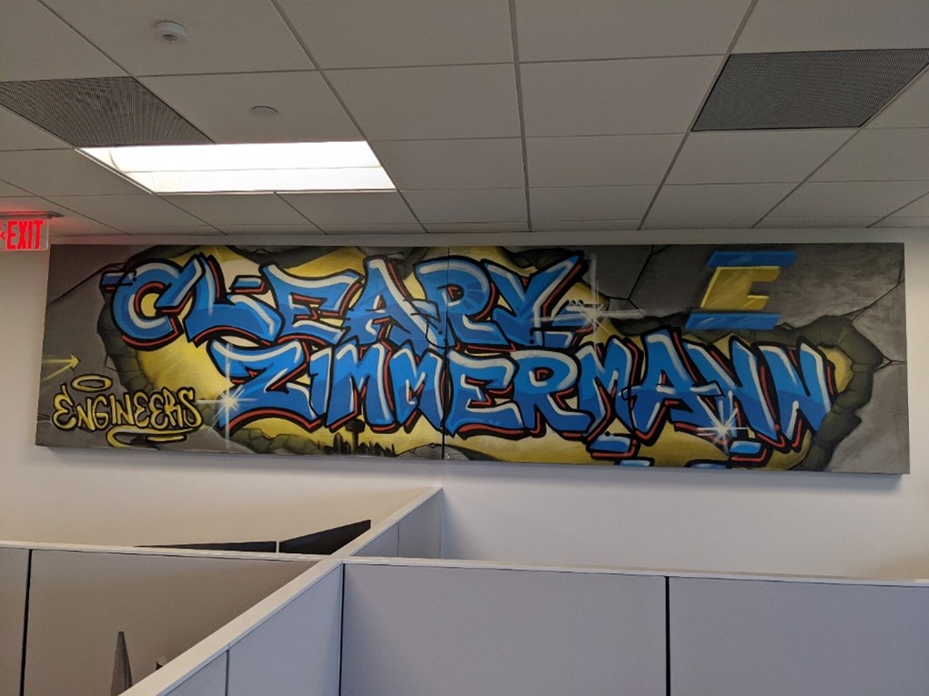 After the success of the Bryan/College Station office, Cleary Zimmermann continued to growby expanding into the Houston market. Currently, Miles Nommenson serves as our Principal | Building MEP of our Houston office, with a team of 14 full-time employees. To make sure that we added that CZ touch, we hung our wonderful CZ graffiti sign.